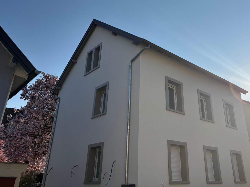 Cette maison située à Schiltigheim présentait un vrai potentiel architectural. La bâtisse disposait déjà d’un beau volume, d’une présence forte et d’un charme certain, mais son enveloppe extérieure nécessitait une remise en valeur.